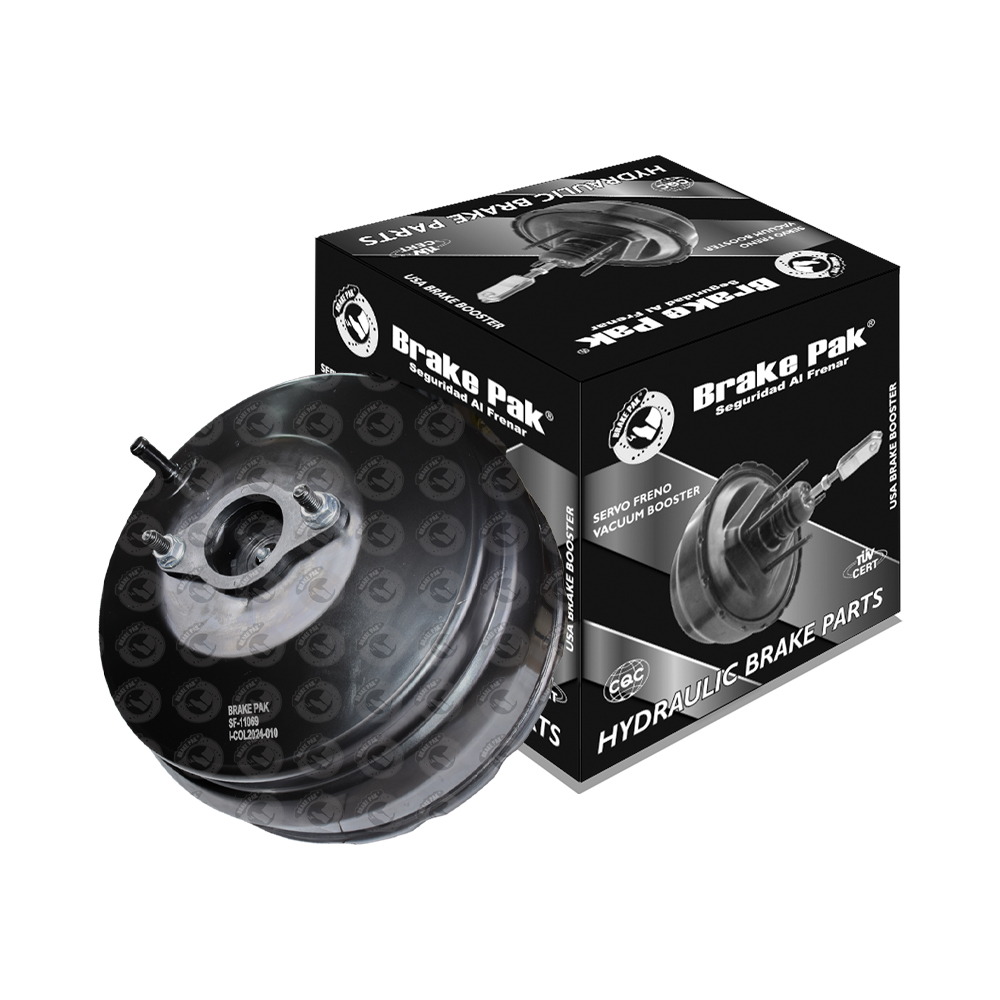 El Booster o servofreno es una carcasa metalizada que contiene una válvula y un diafragma, junto con un vástago que atraviesa el centro del servo, donde se conecta al pistón del cilindro maestro.